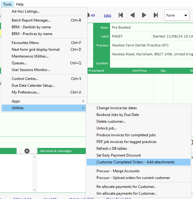To begin adding these attachments to the current customer, use Tools menu > Utilities > Customer Completed Orders - Add attachments.