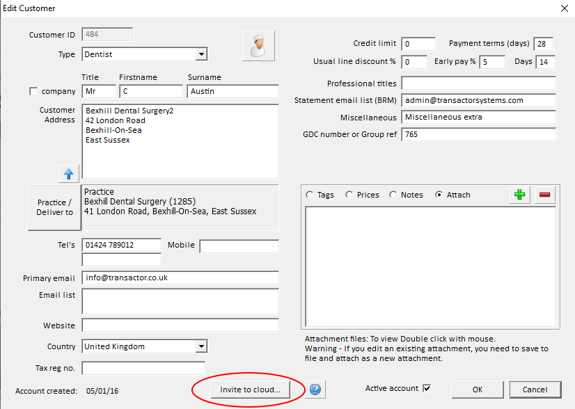 Once you are viewing the customer's details, click the "Invite to cloud" button at the bottom of the page.