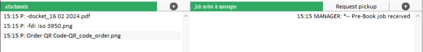 The screenshot above shows 3 attachments that have arrived from Procuur, and a message to indicate the pre-booked job has been received.