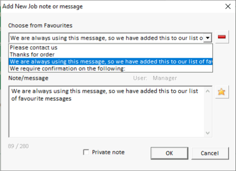Alternatively, use Job menu > Add Private job note/message.