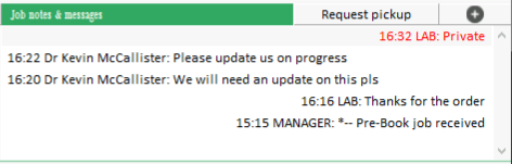 You can add new messages by clicking the plus + symbol at the top right of the Job notes & messages area.