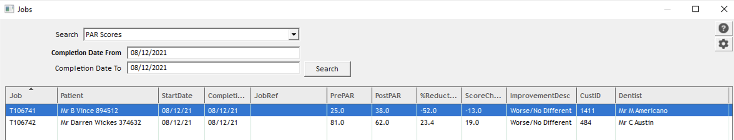 The PAR scoring data entry allows you to enter a pre and post score for each job, these figures would need to be calculated beforehand, and then entered into LabManager.
