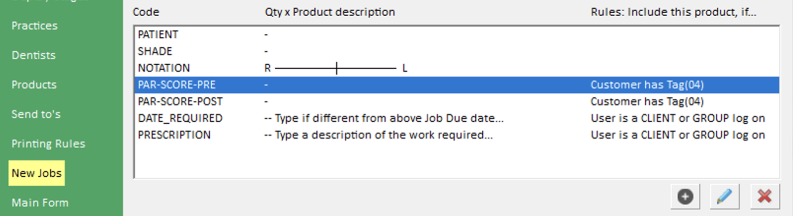 Any job that needs to be included in the PAR score report must have two particular products added to it. These can either be added manually by the user, or it might be more preferable to add these to the New Job template, so that all new jobs have these items ready for use.
