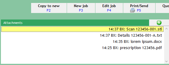 The dentist may have entered a description of the job prescription, and/or will have attached files to support this. File attachments will show in the bottom left of the form when viewing the job. You can double-click on a file to open it.