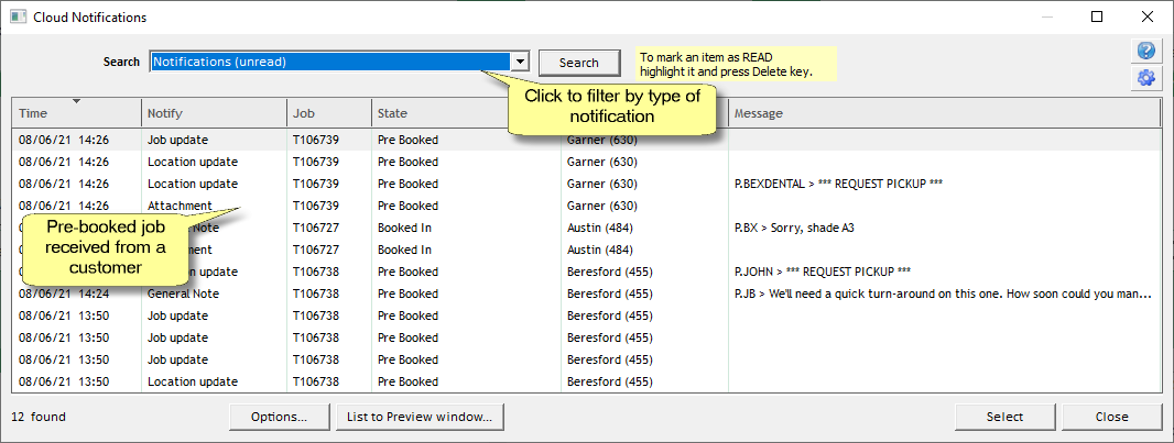 You will be presented with a list of notifications, including pre-booked jobs.