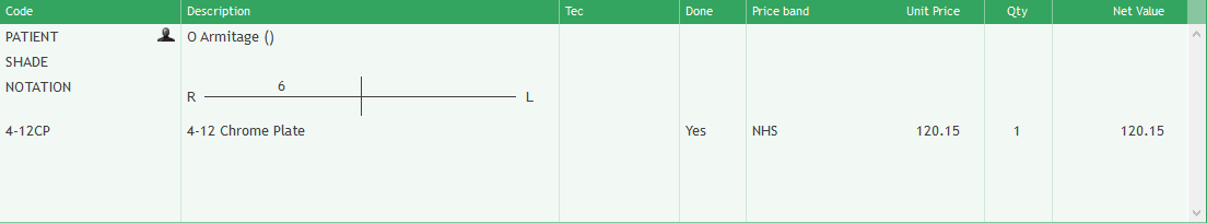 This area lists the individual items associated with the job, whether they are products and services or patient details. These items are added to the job by the user and can be modified at any time prior to the job being booked out and invoiced. LabManager can also be configured to add default items to new jobs to save the user having the enter these every time a new job is started.