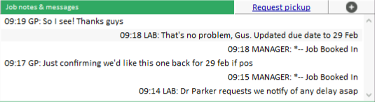 Further details on the Job Notes & Messages area can be found in a following topic.