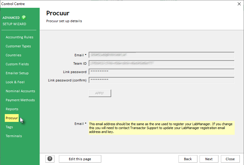 See the Link LabManager and Procuur help page for full information on LabManager's integration with the Procuur procurement service, and how to obtain the necessary information for completing the boxes on this page.