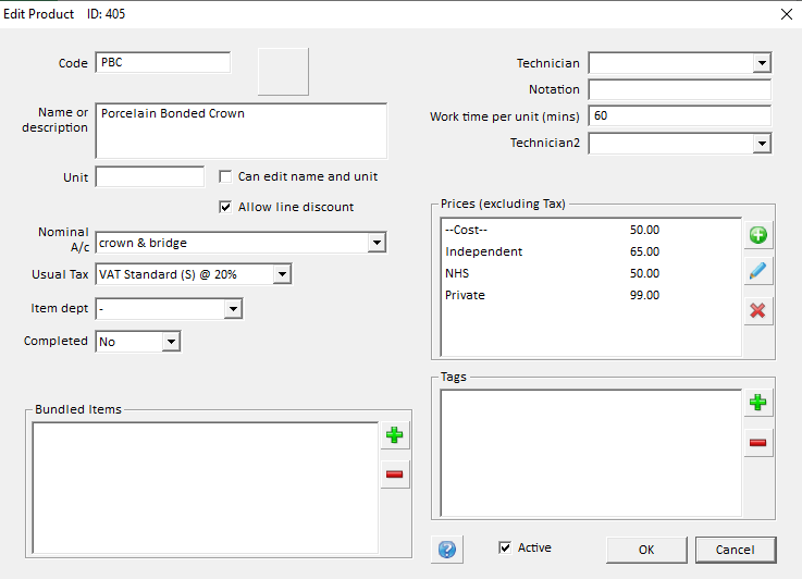 Active - When ticked, this product is available for use and shows in the product selection list. Historical jobs which included this product will still include this product, even if the product has since been marked inactive.
